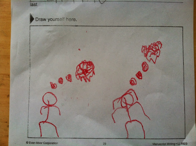 When I asked Stephen to tell me about what he drew he said, "this is me thinking about having a hamster, and this is you thinking about being a writer."